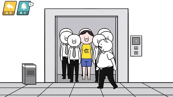 上班乘电梯途中遇到了领到,操控人物往电梯里面挤,给领导腾位置。