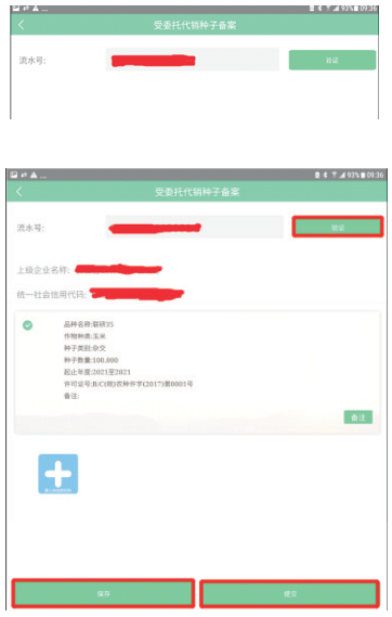 4.代销商选择“委托代销备案”,进入备案页面,输入备案流水号,然后点击“验证”。验证后出现备案单信息,点击上传备案材料,最后点击“提交”。