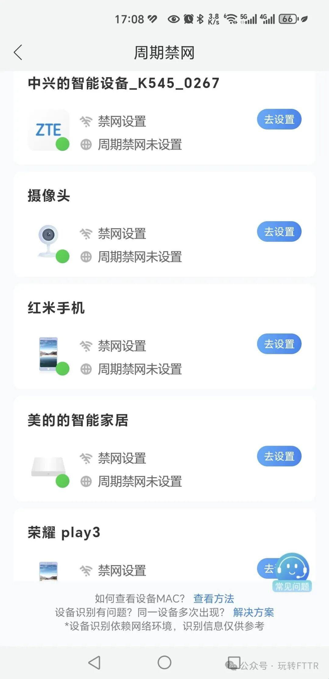 2、在需要禁网的设备对应的右侧点击“去设置”。