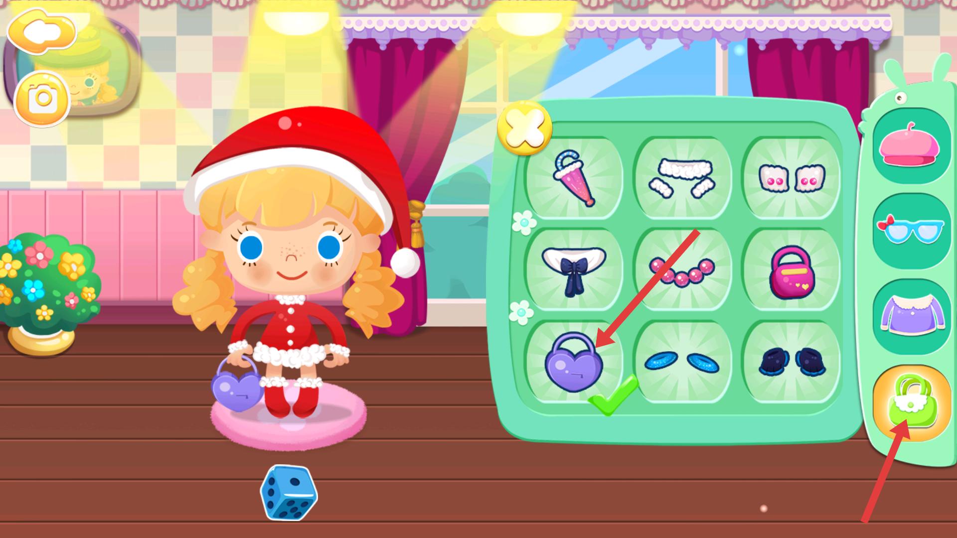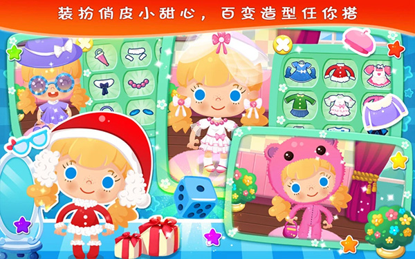 角色装扮:在卧室里点击糖糖,就能为她挑选并换上不同的衣服,打造百变造型。