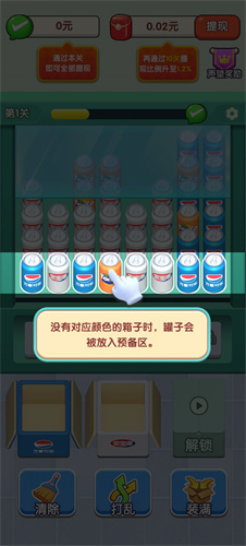 3、没有对应颜色的箱子时,罐子会在放置在预备区。