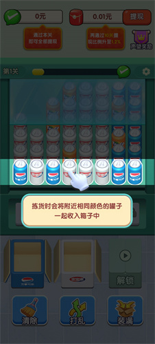 1、从第一排开始拣货,点击第一个罐子。