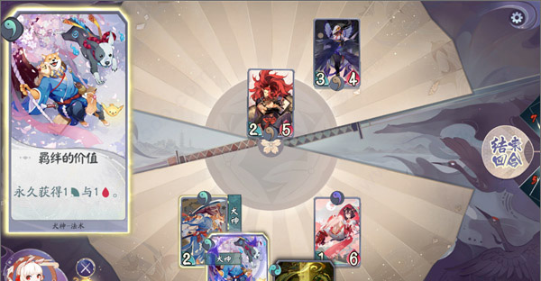 1、第一回合在犬神攻击前我们优先使用法术牌“羁绊的价值”,“羁绊的价值”提供的永久性力量值加成能让我们多打出一点伤害,在日后对战中,很小的细节都有可能影响到对局结果,所以客人们一定要谨慎认真,逻辑清晰,遇到问题才能做出最优解。