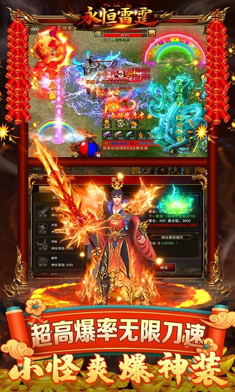 永恒雷霆是一款由映葭苇推出的复古传奇手游,正所谓装备全靠打,用最为经典的画风与炫酷的掉落特效为你带来最原汁原味的传奇,除此之外,还有超高的掉率让你能够快速的完成装备都刷取,去冲刺更高的游戏等级追求巅峰,单职业的游戏玩法也摆脱了传统三职业传奇在组队上的硬性要求,让每个玩家都不用考虑其它因素来进行的自由组队。技能上也进行融合了,曾经三个职业的技能如今一个角色全部都可以使用,因此玩家也可以根据副本环境来进行技能的更换,更加爽快的体验游戏,华丽的视觉特效之下满屏掉落物也令人欣喜若狂,值得你来放飞自我。