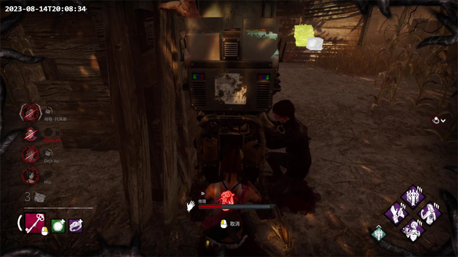 2、逃亡者需要在躲避屠夫的同时修理发电机,通电后打开大门逃离庄园逃离屠夫魔掌。