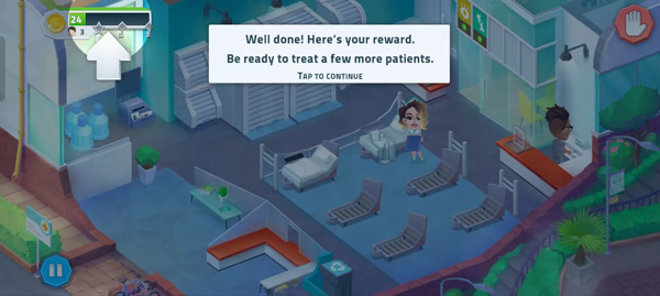 5、成功治疗一名病人会获得金币和左上角的进度,完成后会获得升级设备的星星。