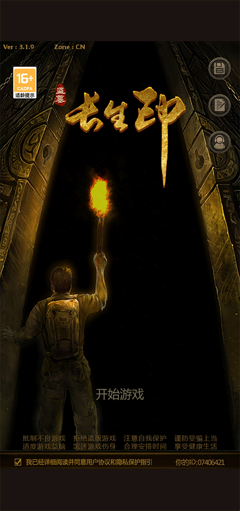 1、打开盗墓长生印,点击开始游戏;