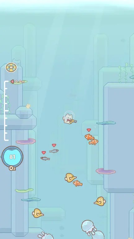 1、玩家能够与可爱的猫潜水员一起在深海捕捉各种海洋生物。