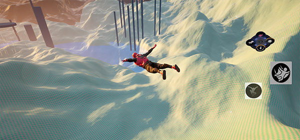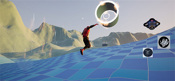 4、移动角色从平台上跳下,然后按住滑翔键位进行滑翔,来到另一个平台。