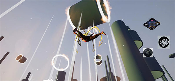 5、来到下面这个平台之后,继续向前跳跃,穿过重重障碍,遨游于天际之上。