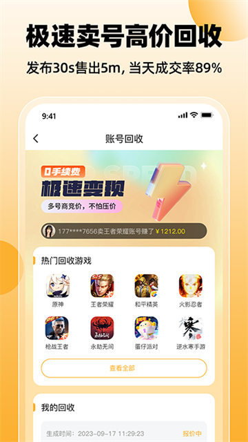 1、账号交易:上架戏仔,随时随地一键转卖,立即变现。