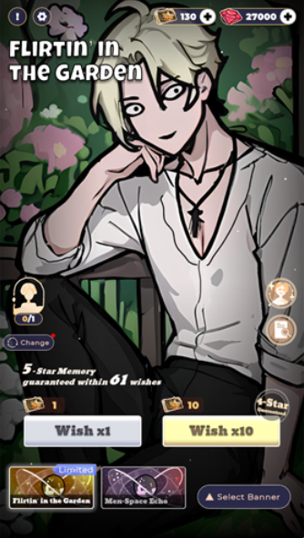 1、进入游戏,和恋与深空的抽卡界面基本一致,我们可以看到这个地方,70抽是五星保底的。