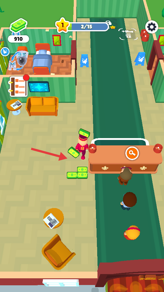 4、完成客房服务等操作后,会获得金钱奖励,可用于酒店升级、购置新设施等,不断壮大酒店规模吸引更多客人。
