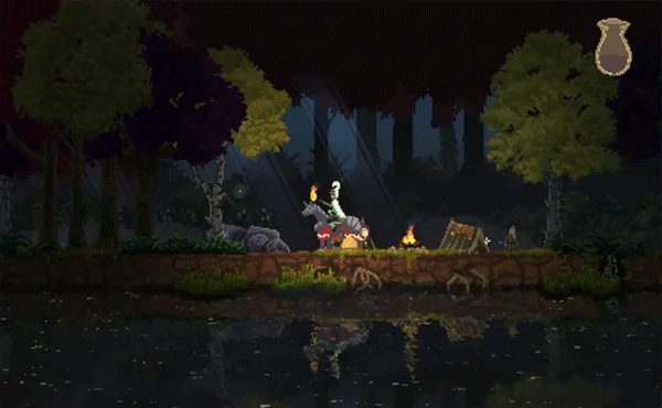 血月来了就提前往森林里扔钱(防止弓箭手捡走)减缓怪的速度,白天就走了