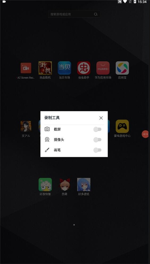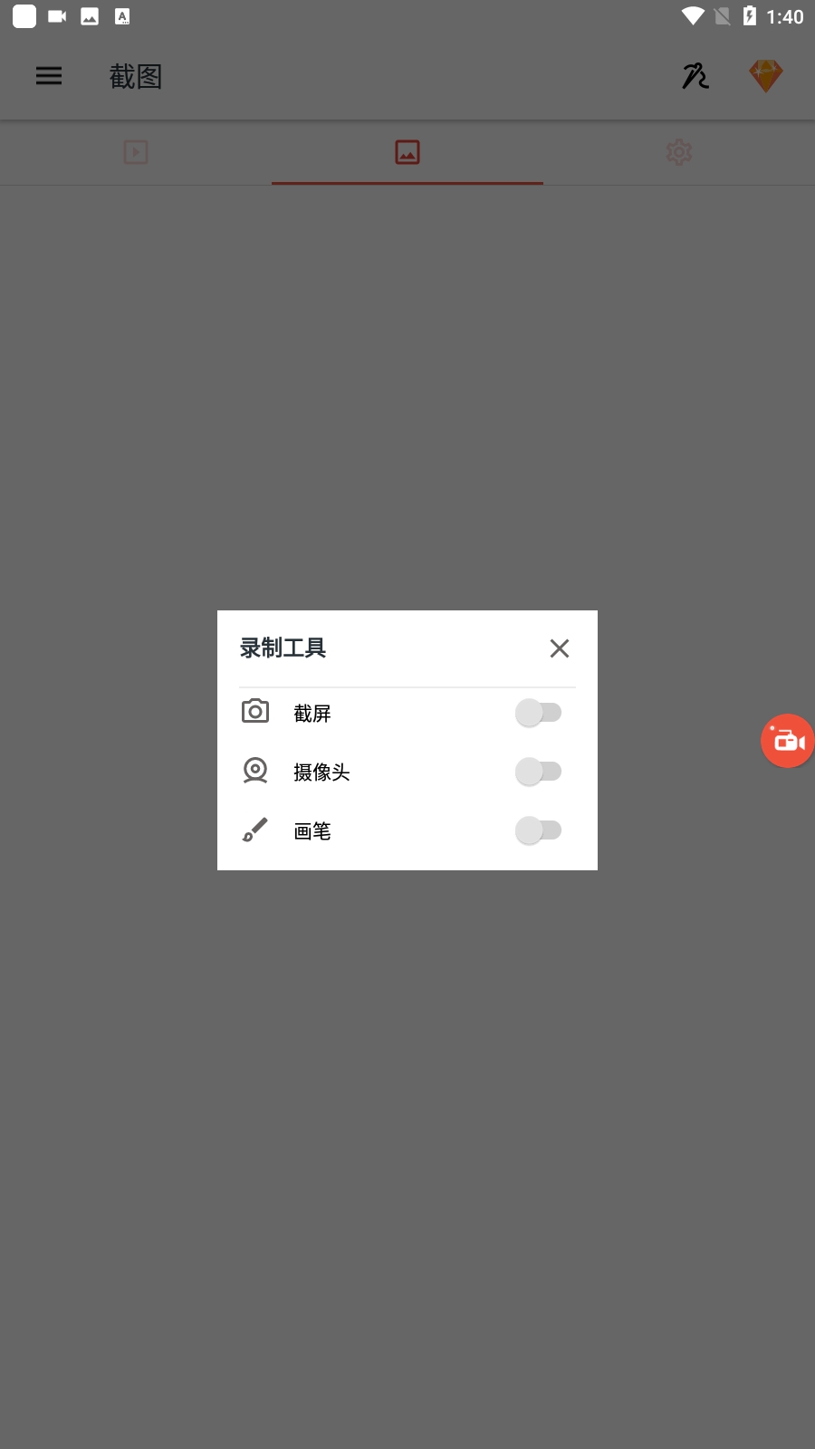 6、此外在录屏的时候点击图标下方的工具箱图标,还可以使用截图、开启摄像头、画笔等功能。
