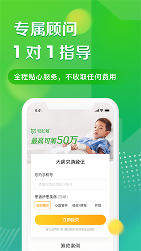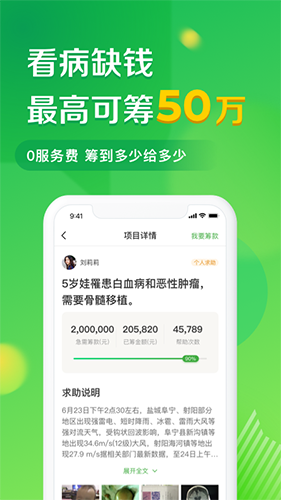轻松筹app是一款专为用户筹款所打造的线上众筹平台,为用户提供了全方位的筹款选项与线上宣传渠道。用户可在平台上选择发布的筹款项目,并能直接向广大其他用户获取帮助,以便能够帮助你解决一场病痛的手术费,或者解决各种生存有着极大困难的家庭与个人。对于一些病症平台有着严格的审核机制,只有在获取真实的病历信息后才会发布。
