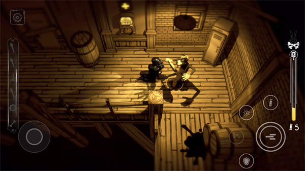 3、逃离墨水恶魔:墨水恶魔每一步都纠缠着你,他的墨黑心跳标志着危险即将来临。在一场紧张的猫鼠游戏中,没有任何地方是安全的,你能做的只有逃跑、躲藏并智取这股所向披靡的力量。