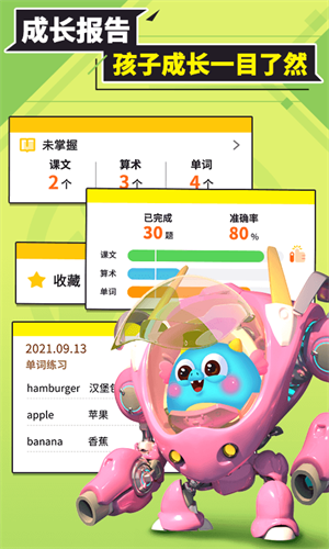 2、包含识字、英语、儿歌、写字课、动画屋等。提供丰富且优质的课程内容。