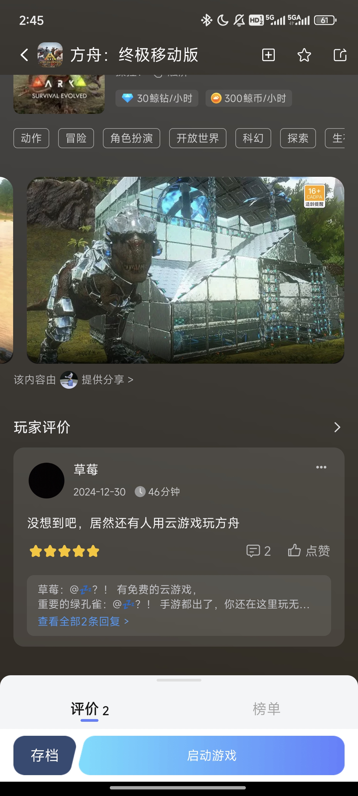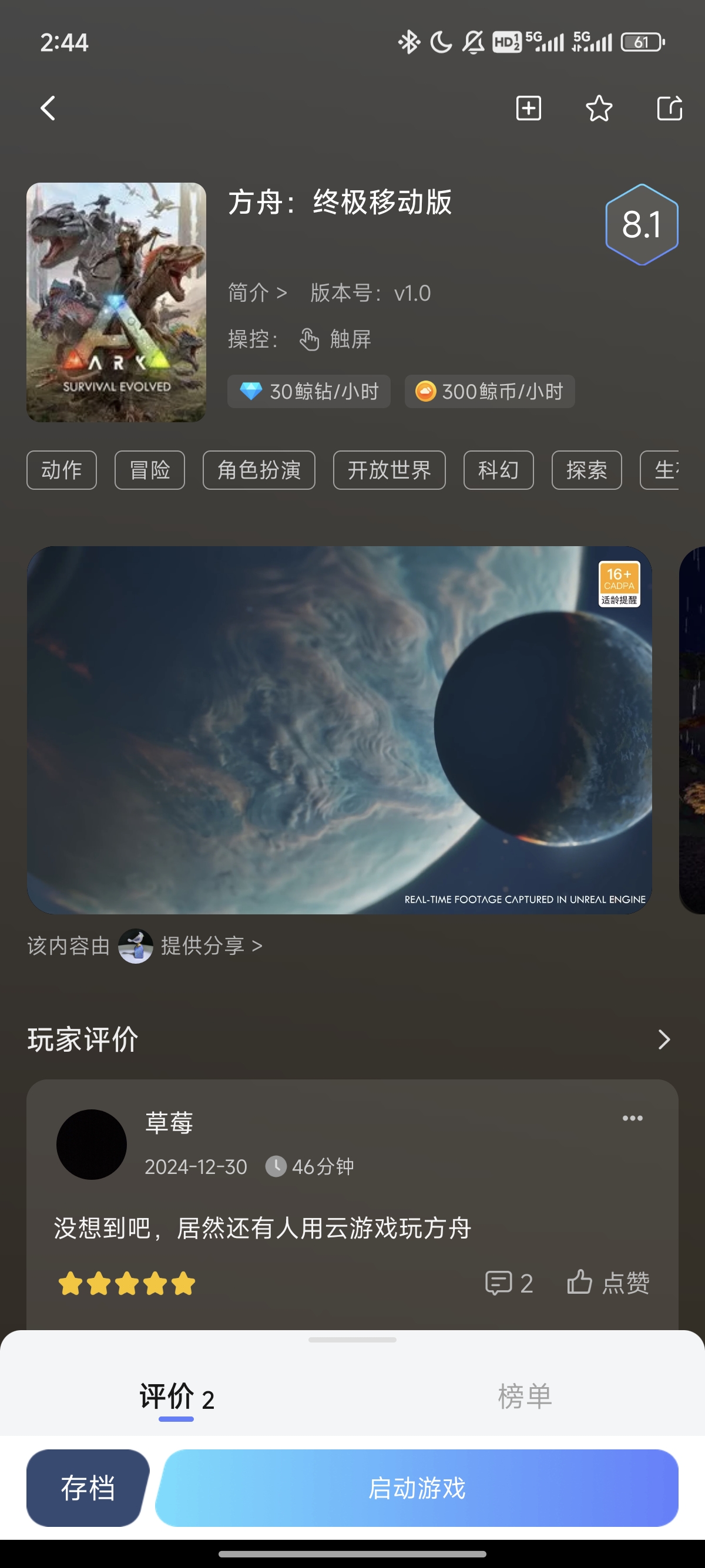 方舟终极移动版是一款超刺激的手游。它拥有广袤且逼真的史前世界,恐龙种类丰富多样,玩家可尽情驯服、培养。战斗玩法丰富,PVP与PVE模式任你选,满足不同战斗需求。优化的操作体验,让你在手机上也能流畅战斗。还有丰富的建造系统,能打造属于自己的基地。无论你是策略爱好者还是战斗达人,方舟终极移动版都能给你带来极致的游戏享受。