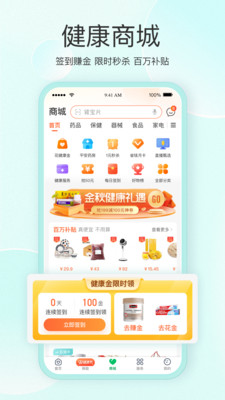 健康评测,帮助您了解您的健康风险;运动计步奖励,每天记录运动步数,步数换积分,立走立赚,每一步都是为您的健康投资。