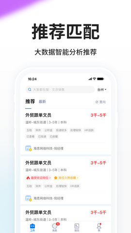 1、匹配合适的职位,系统会根据职位需,求自动为你匹配到最新的职位。