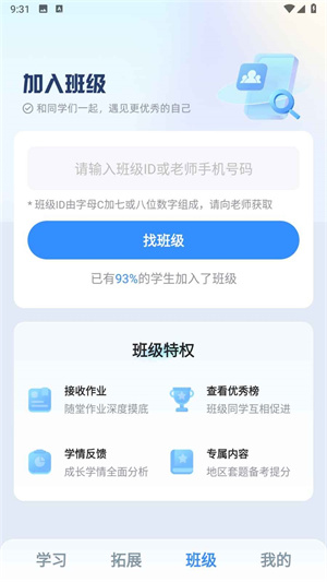8、选择所在班级,输入自己的学号,如果没有学号可以随便填一个数字,后台会统一修改,点击加入班级。