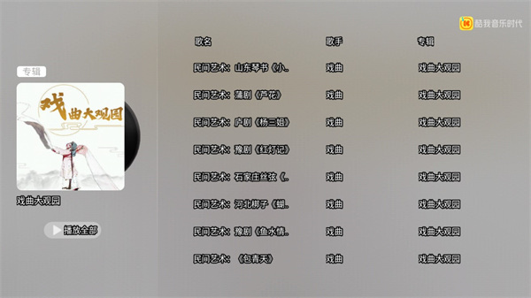酷我音乐TV版,专为大屏打造的音乐盛宴!它拥有海量正版曲库,涵盖各种风格音乐,新歌热歌老歌任你畅听。界面简洁操作方便,家中老人小孩都能轻松上手。支持多种音效模式,能带来沉浸式聆听体验。还可在线K歌、创建专属歌单。无论是休闲放松,还是家庭聚会,酷我音乐TV版都能满足你的音乐需求,让高品质音乐在大屏上尽情释放。