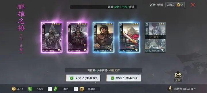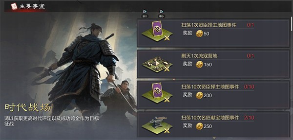 -地图事件:地图定期刷新“贤臣择主”(获特定五星武将)、“战法研习”(获S级战法)、“名匠献宝”(获锻造宝物)等事件,奖励可上阵使用或在鸣金后兑换时代币。地图随机刷新事件稀有奖励(进阶武将、藏品宝物)对应更高时代币价值