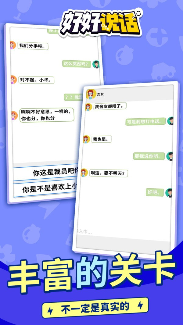 玩家需要不断完成游戏之中的任务,成为优秀的脑洞达人,不断完成对话闯关。