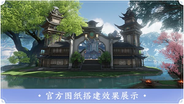 在侧弹窗中点击云间宿图标即可访问庄园,点击右下角修建按钮,可以自由选择组件,更有官方图纸助你一键打造华美庭院!