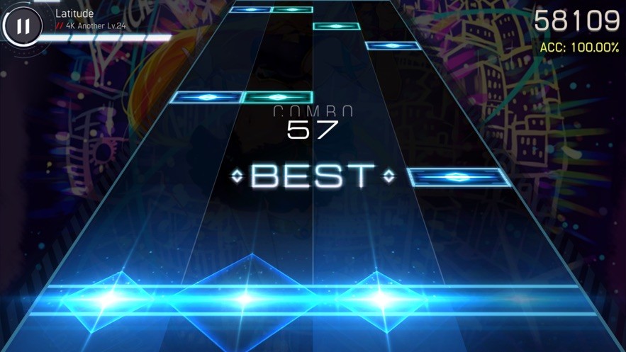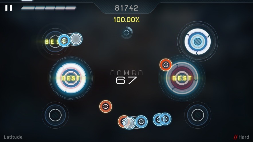 屏幕上方会掉落方块,玩家需在方块掉落在目标线上时点击它,长条方块则需要长按,方块越接近目标线获得的分数越高,漏击则不得分。