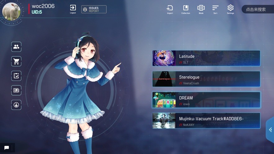 游戏支持osu、sm、bms、pms、mc等多种格式的谱面,玩家可以自由选择喜欢的谱面进行游戏,还可以导入自己的MP3文件。