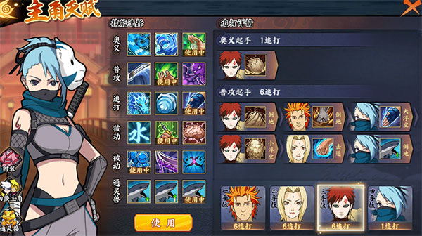 Tip:伤害系数不高,主要作用在于混乱,具有控制或者打断的战略意义且必杀时可以获得一次额外普攻,所以前期纲手的奥义不着急交,等必杀再释放多治疗一次或许可以扭转乾坤;