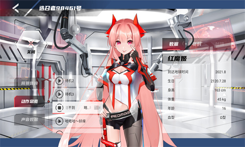 1、我们可以通过互动的方式来提升好感度,在主界面点击红魔姬的任意位置可以触发不同的效果,可以看到左侧的好感度在得到提,