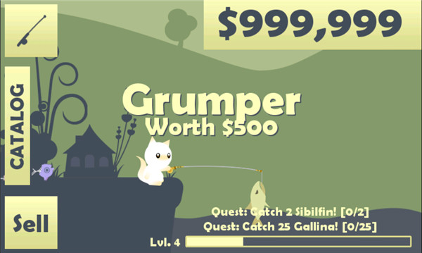 4、获得的金币值越多,主人就会再次钓鱼的鱼线就会加长,主人掉的鱼就会更多,获得奖励也就更多。