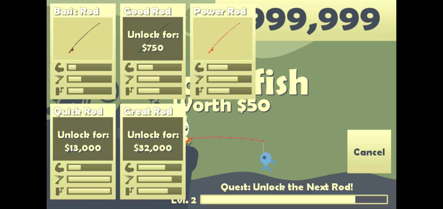 2、完成各种任务,以获得经验和硬币,解锁更高级别的鱼竿,并捕获更多珍贵的鱼;