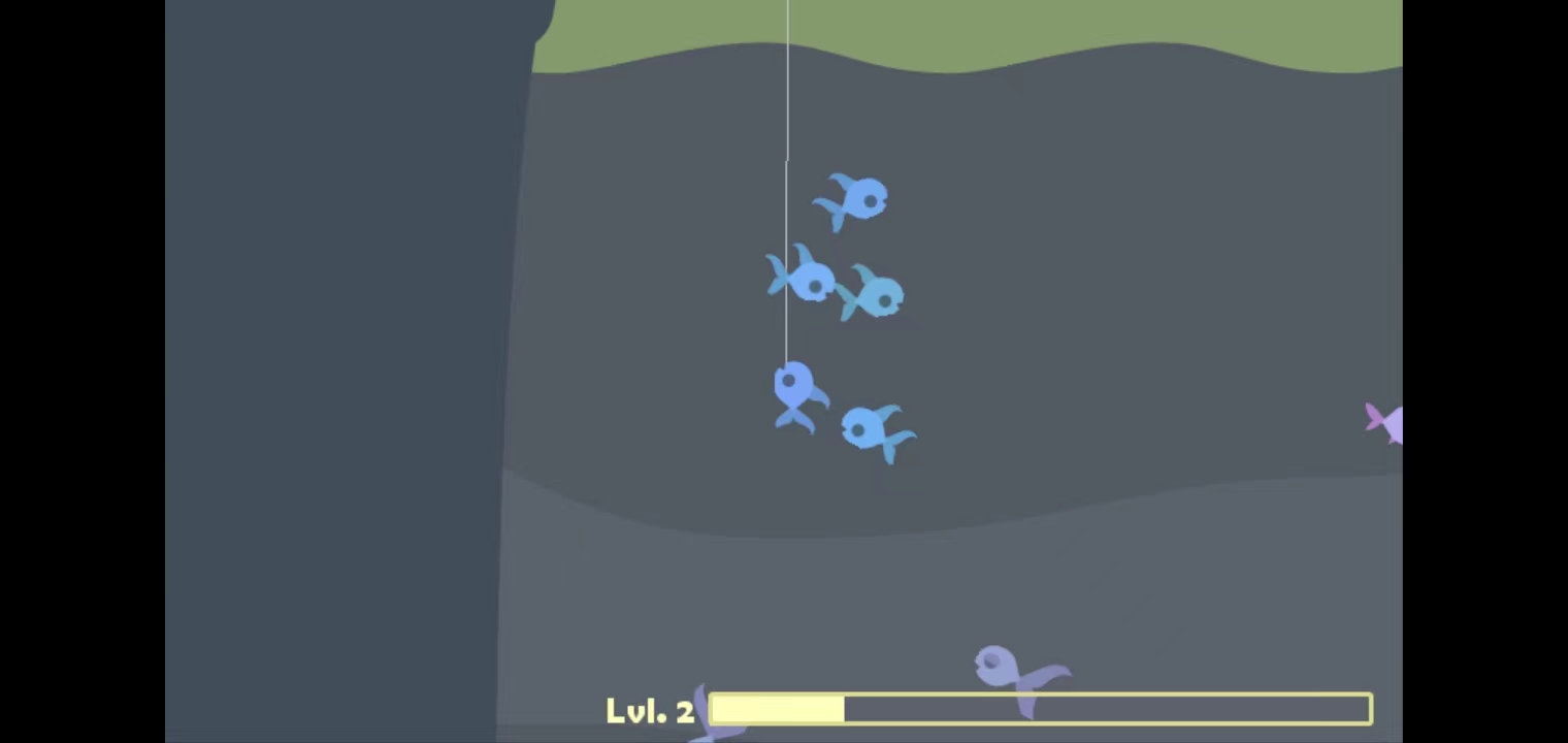 1、首先,玩家在本站下载并安装好游戏之后,打开进入,通过滑动手机屏幕,把鱼钩抛进水中钓鱼;(如果鱼钩没有抛进海里,那就多试几次)