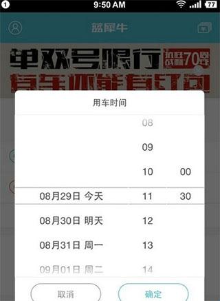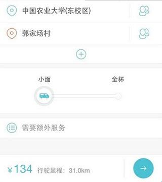 4、可选预约服务价格比较实惠,起点终点输入完毕后,可根据货物的多少选择小面或者金杯,另外可以选择马上服务或预约服务。点击"预约服务",会弹出用车时间对话框,界面设计还是蛮不错的;