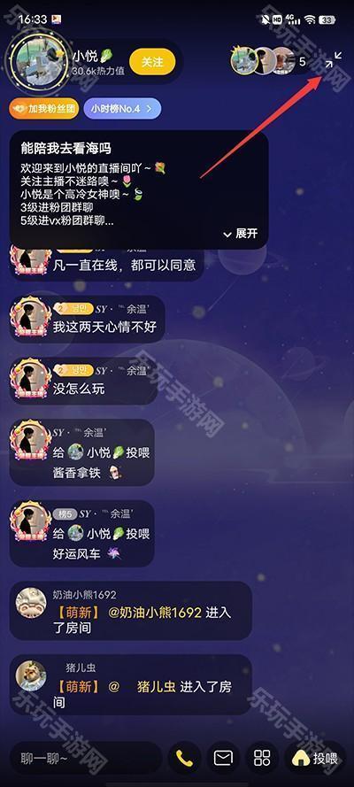 1、打开唱鸭APP直播房间,点击右上角“最小化”图标。