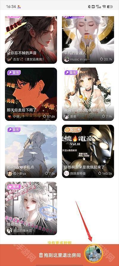 3、将“房间”图标拖动到底部,即可退出该房间。