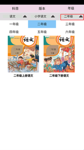1、进入软件页面,可以选择年级来找到需要的课本。