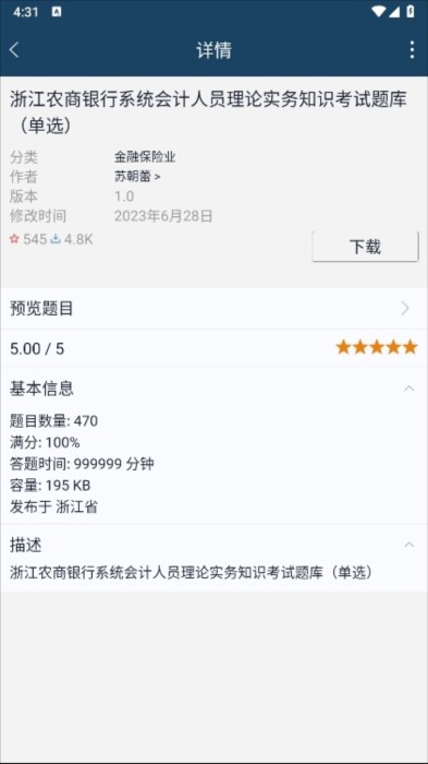 试卷下载到手机后,可以随时答题,答题过程中无需连接互联网,非常便捷。用户的题库题目存储在云端,方便随时查看和管理。软件还支持建群组共同学习,在线动手编制试卷,界面设计简洁清晰,给用户良好的使用体验。磨题帮会保存用户每一次考试和练习的记录,用户可以随时浏览答题记录,查看答错的题目,重复练习错题或收藏的题目。