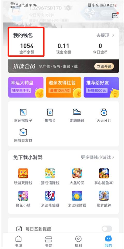 米读小说APP如何查询金币?