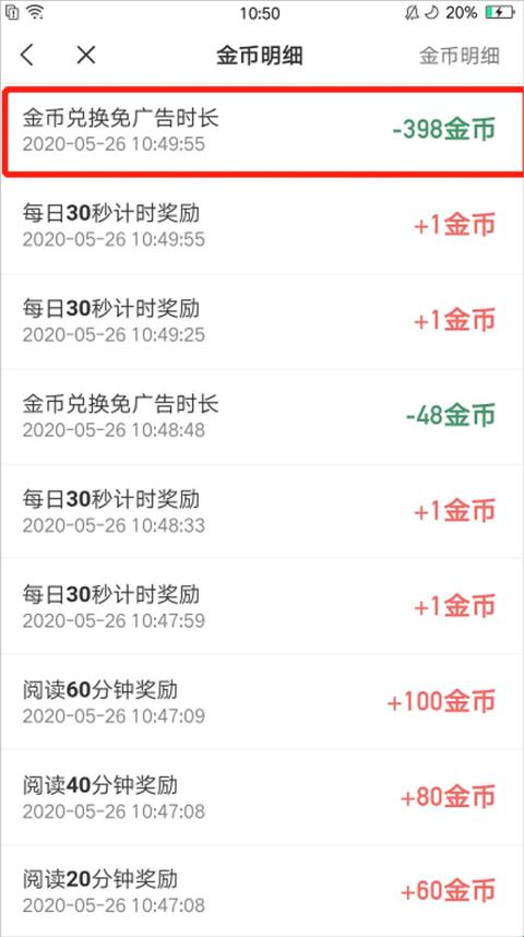 3、如金币明细内,有“金币兑换免广告”的扣款记录,说明您参加了花费金币免广告活动。
